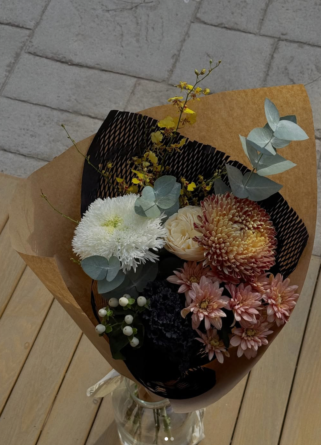 Bu özel buket, sonbaharın dinginliğini ve sofistike havasını yansıtan, sade ama etkileyici bir tasarım.